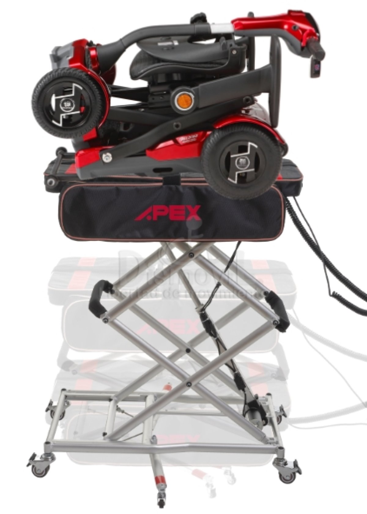El elevador Zeus de Wellell permite elevar y bajar scooters y sillas de ruedas de forma eléctrica hasta 50 kilos. Nos permite fácilmente meter nuestra maquina en la parte trasera del coche presionando un botón del mando ergonomico permitiendo ajustarlo a la altura deseada.