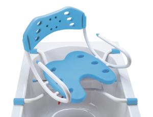 Elevador con respaldo reclinable para un baño relajante y refrescante. El AQUATEC ORCA de Invacare ofrece elevaciones y descensos seguros y cómodos con un solo dedo.