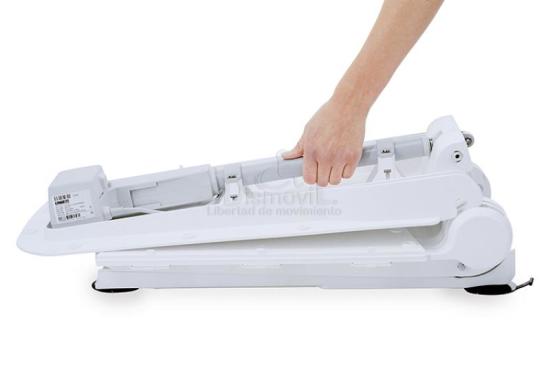 Las baterías están integradas, en caso de descarga y por seguridad, no será posible realizar el descenso, lleva aro y gancho para colocar el mando en el respaldo, su montaje es sencillo y sin herramientas, se separa en dos piezas para montar y desmontar fácilmente, haciendo así su transporte ligero.
