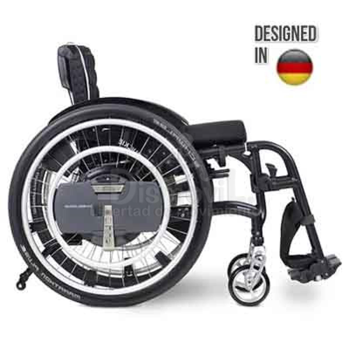 WheelDrive, de la marca Quickie, es un innovador dispositivo eléctrico de ayuda a la propulsión que, acoplado a tu silla de ruedas manual, facilitará tus desplazamientos gracias a su sistema de doble aro. El aro de mayor diámetro ofrece una ayuda eléctrica mientras que el más pequeño te permitirá usar tu silla de ruedas manual como si fuera una silla eléctrica.