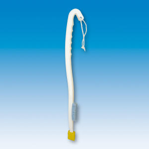 Esponja de baño con un mango de plastico con un largo de 50 cm.