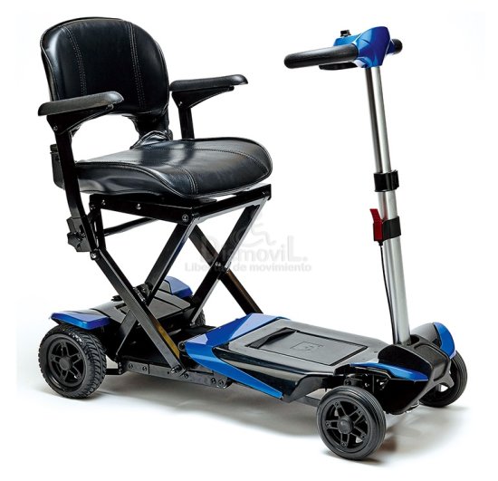 Dentro de nuestro catálogo de scooters eléctricos desmontables/plegables encontrará el I-Transformer de Wellell este scooter eléctrico para discapacitados es ideal para espacios reducidos. Se pliega fácilmente gracias a un mando a distancia. Su batería de litio hace que el peso total de este scooter sea de 25 Kg incluyendo la batería, siendo estas baterías aptas para poder viajar en avión según la normativa IATA.