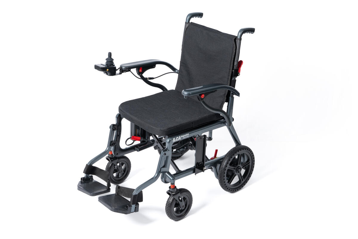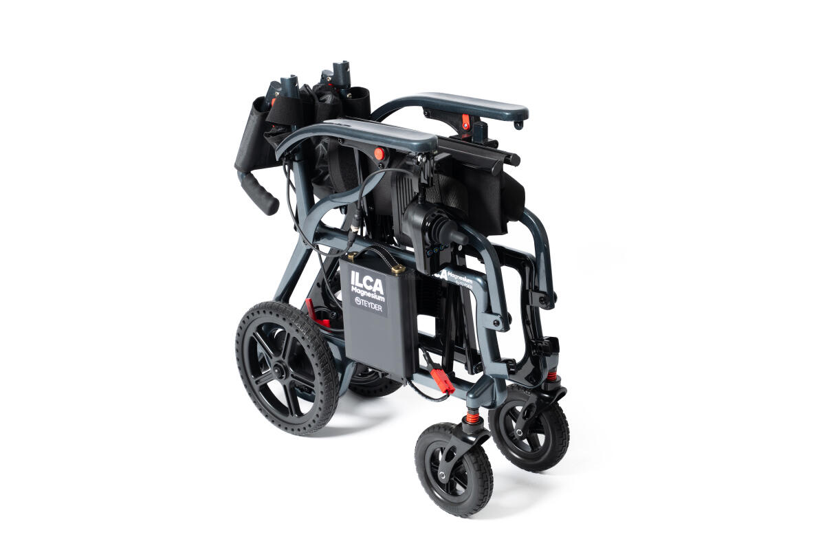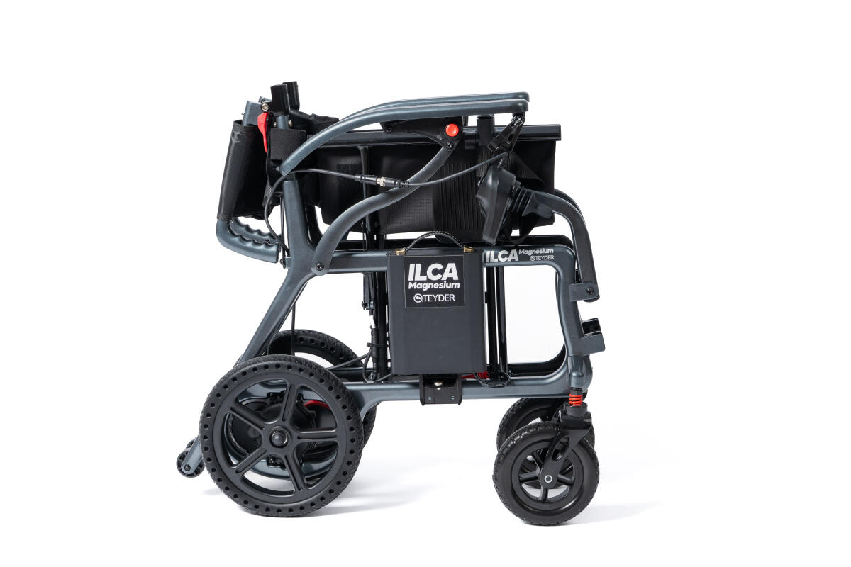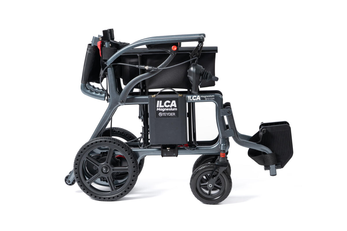 Todos los productos se envían listos para su uso (opcional)La silla de ruedas eléctrica plegable Ilca de Teyder llega a la nueva generación con su construcción en Magnesio, logrando un peso ultraligero de solo 14,5 Kg con la batería incluida, llegando a soportar hasta 100 Kg de peso máximo de usuario.