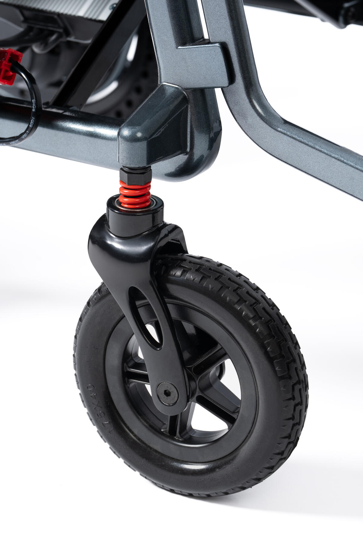 El diseño compacto de la silla ofrece un ancho total de 56 cm ideal para moverse por espacios reducidos, pero con la suficiente autonomía de 25 km para desplazamientos urbanos gracias a la posibilidad de sus dos baterías.