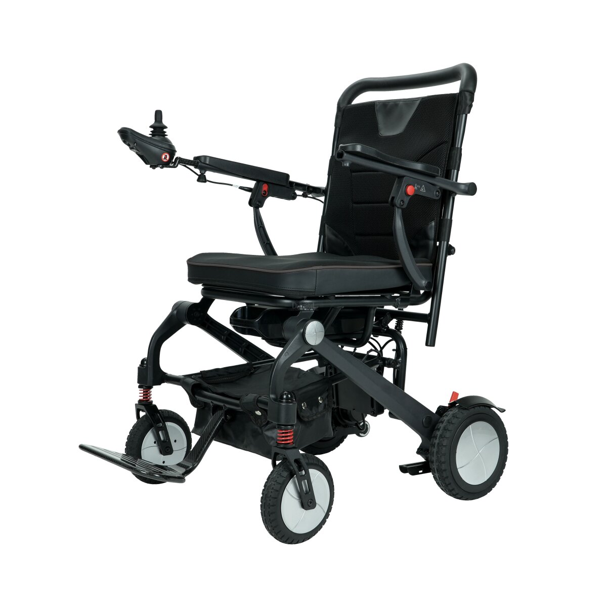 La nueva silla de ruedas eléctrica plegable Jazzy Carbon de Pride es elegante, práctica y ultraligera con tan solo 19,8 kg con baterías incluida. Es la silla de ruedas más ligera que tiene ahora mismo Pride en el mercado.