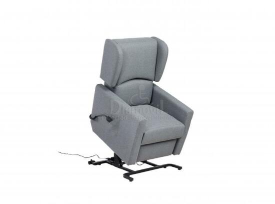 El sillón eléctrico Porto NG de Invacare permite reclinar el respaldo y elevar el reposapies hasta llegar a una posición de reposo.